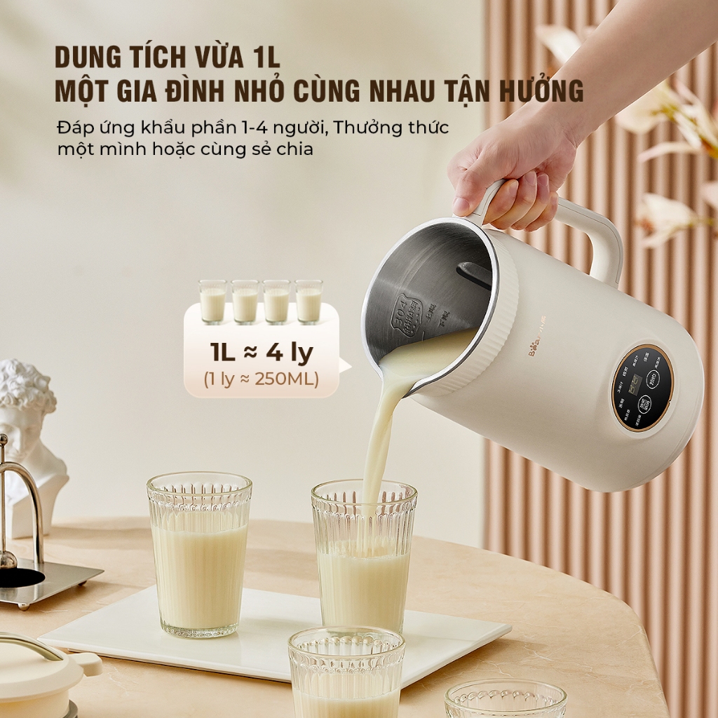 Máy làm sữa hạt Bear DJJ-D06W5 có dung tích 1 lít lý tưởng cho gia đình, mang đến khả năng biến hóa đa dạng các loại hạt, ngũ cốc thành sữa sánh mịn. Với công suất mạnh mẽ thiết bị giúp quá trình chế biến diễn ra nhanh chóng, hiệu quả, giữ trọn vẹn dinh dưỡng quý giá từ nguyên liệu. Đây không chỉ là một chiếc máy, mà là cả một giải pháp dinh dưỡng toàn diện cho cuộc sống hiện đại.