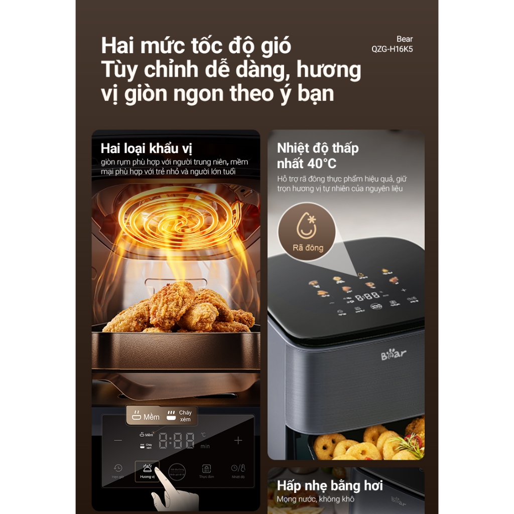 - Chỉnh nhiệt độ & thời gian