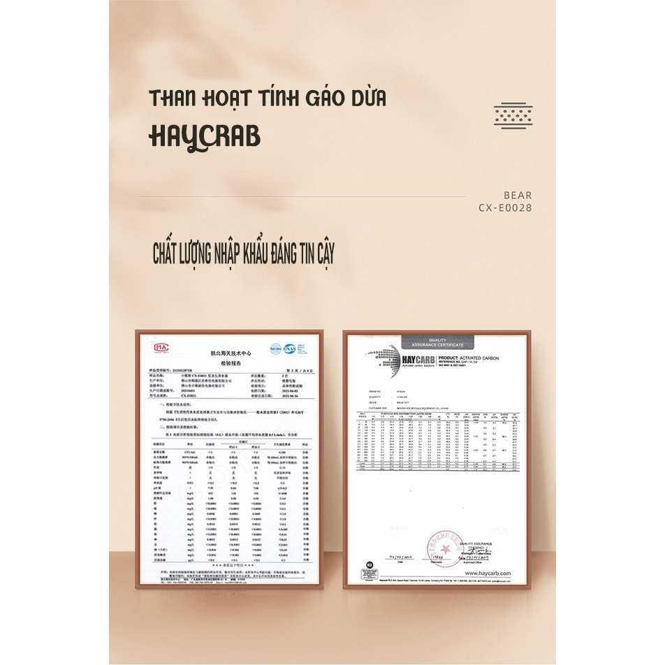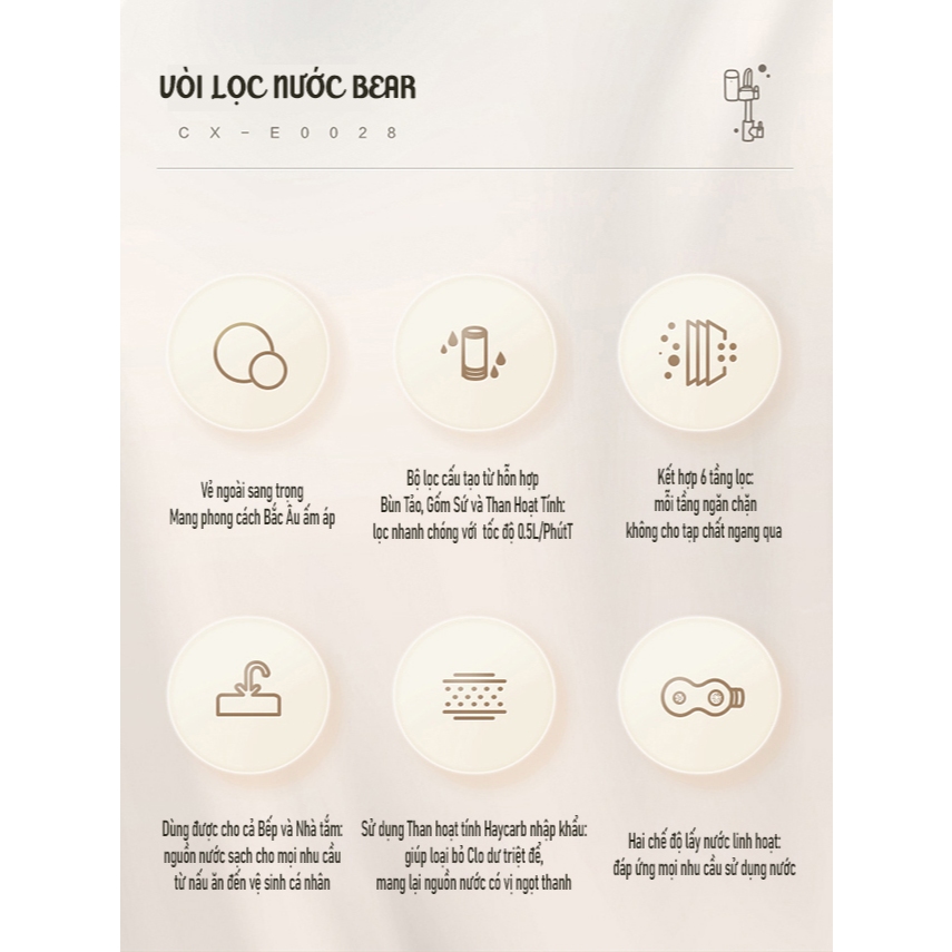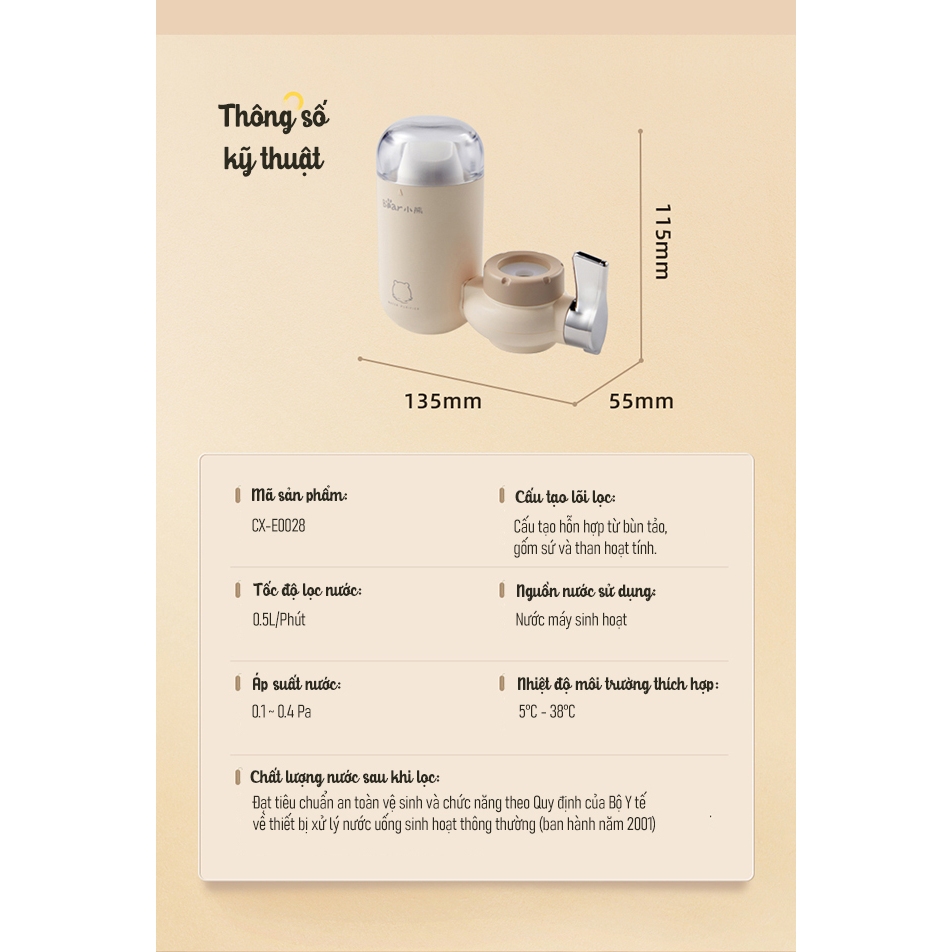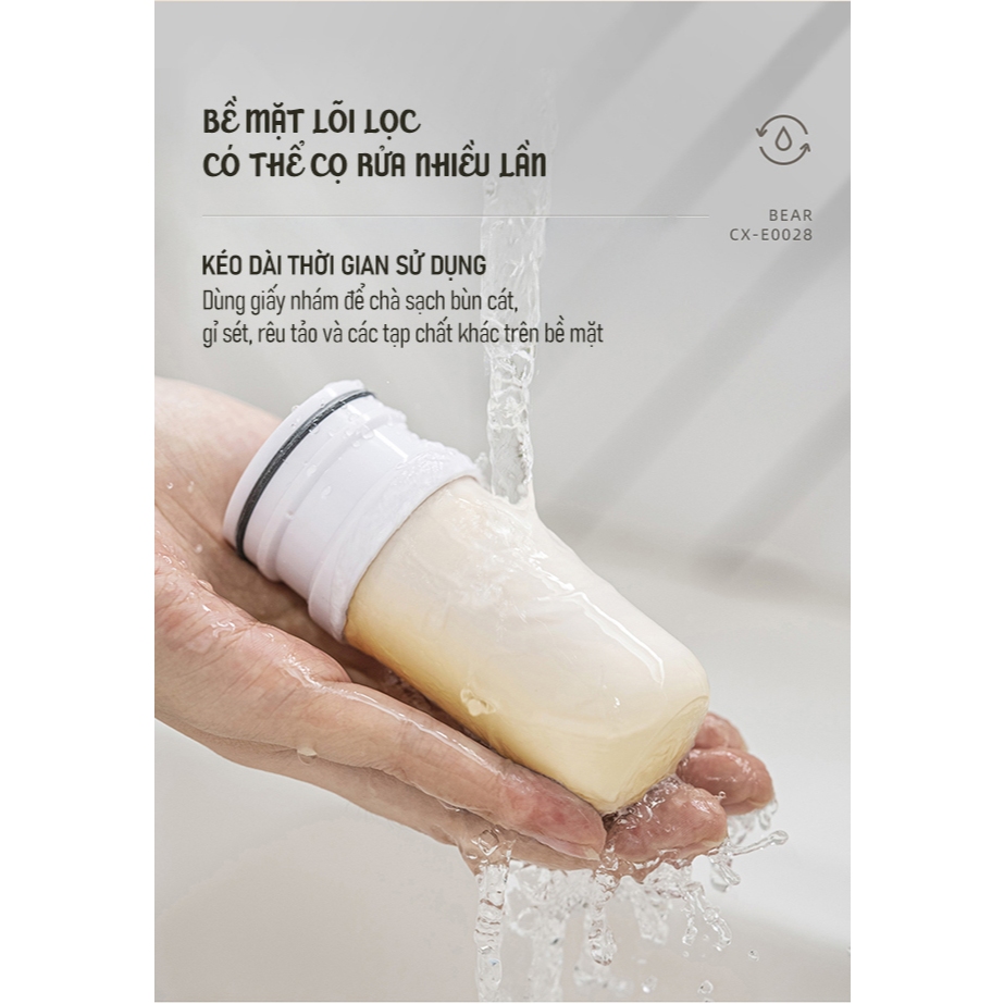 – Quy cách lõi lọc: Lõi gốm + than hoạt tính